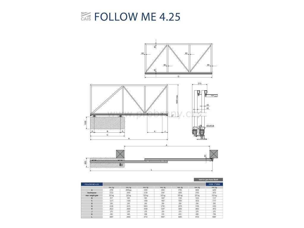 CAIS FOLLOW ME 4.25 sada komponentů pro teleskopickou bránu, průjezd 4,25m/váha 325kg