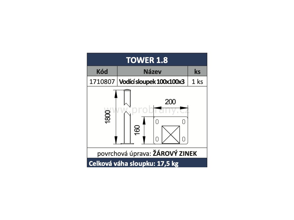 CAIS TOWER 1.8 vodící sloupek k samonosné bráně 1800mm